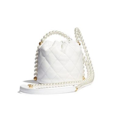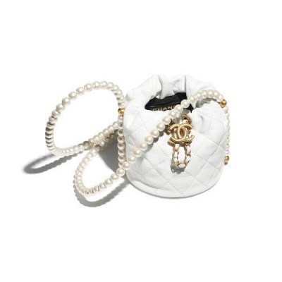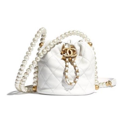 CHANEL/香奈儿 白色小牛皮 珍珠跟金色合金MINI 带抽绳水桶包 单肩包 AS2529 B05543 10601