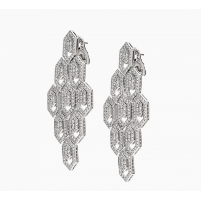 Bulgari宝格丽Serpenti系列标志之作的灵感源自神秘灵蛇褪去蛇皮以积极求变并重获力量的蜕变特质,自1948年以来便始终是无尽更迭的贴切象征。Serpenti系列白色18K金耳环,悉心镶嵌熠熠生辉的密镶钻石,巧妙融合卓越工艺与非凡佩戴体验,尽显难以抵挡的迷人风采与历久弥新的隽永美感。作为力量与自信的不竭源泉,始终与时俱进。